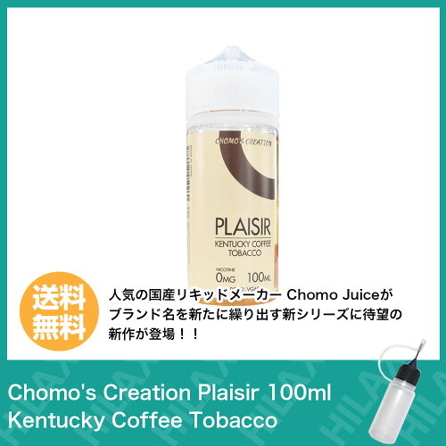 【送料無料】 Chomo's Creation Plaisir 100ml チョモズ クリエイション プレジール VAPE ベイプ 電子タバコ リキッド Kentucky Coffee Tobacco ケンタッキー コーヒー タバコ 大容量 タール ニコチン0 日本製 国産リキッド pod型 に便利なニードルボトル付 爆煙 Hilax