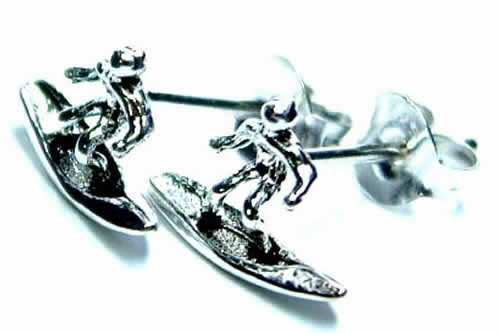 サーフィンをしている人をそのままピアスにした立体感のあるユニークなシルバーピアス。